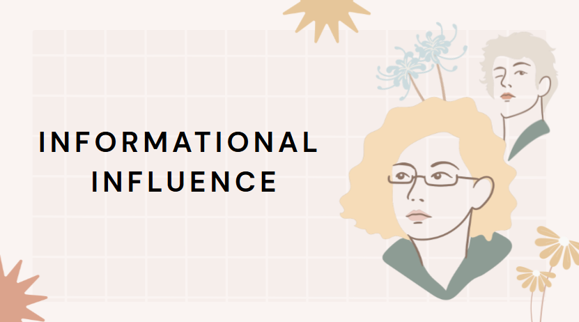 Informational influence happens when a person accepts information from others as evidence of reality. This means we believe something is true because someone else says so, especially if they look confident or experienced.